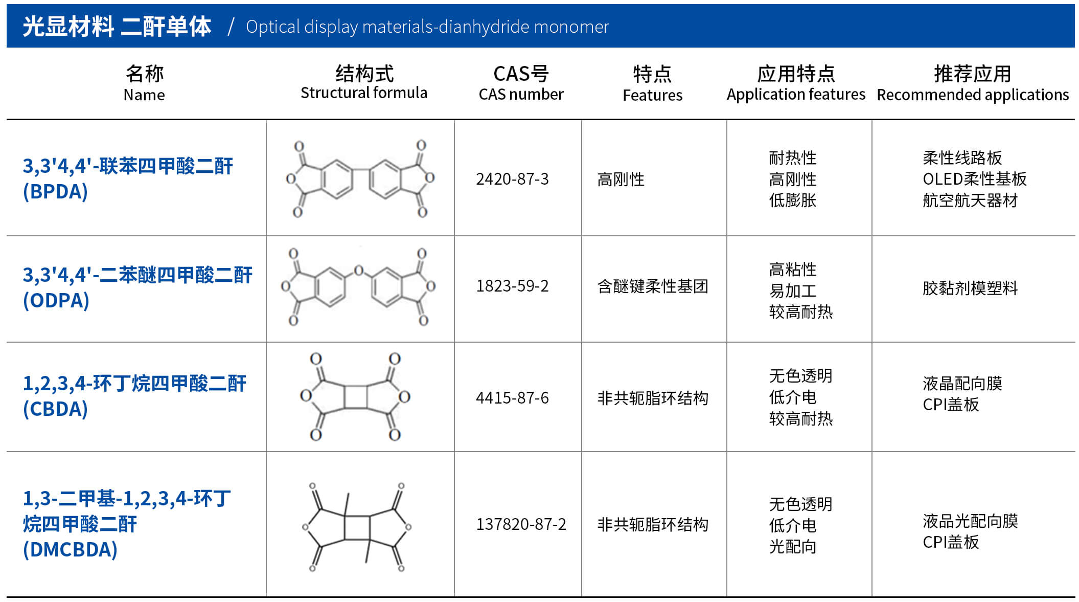 主要用途:柔性电路板、航空航天器材、液晶配向膜、CPI盖板